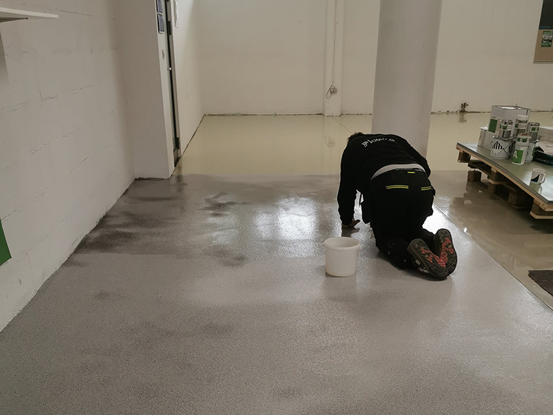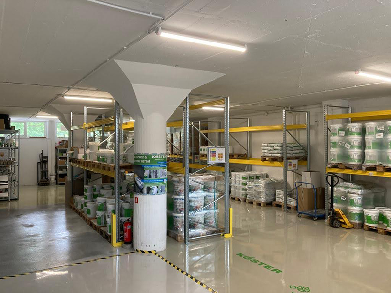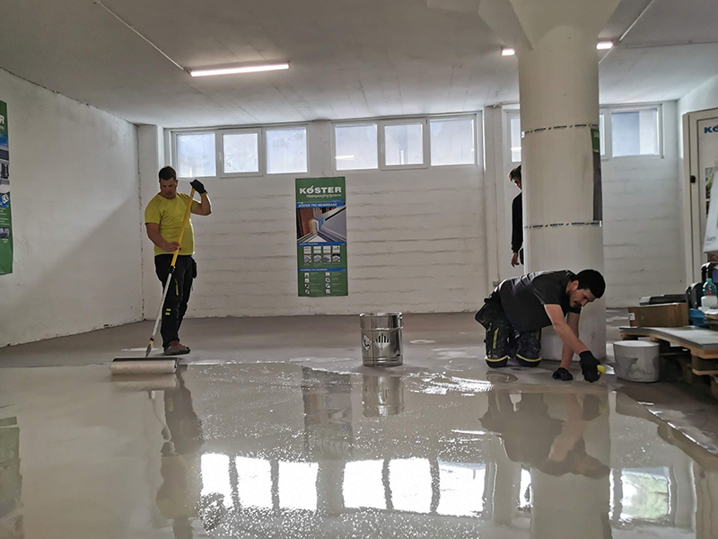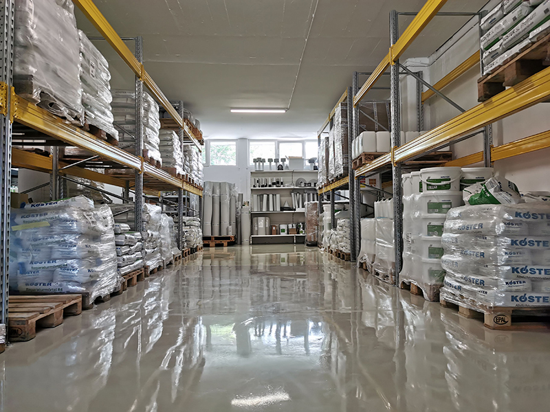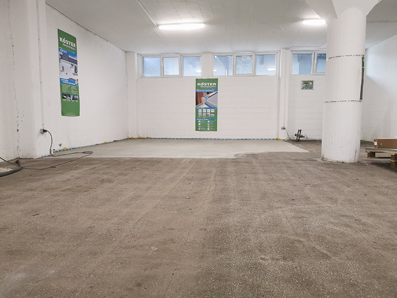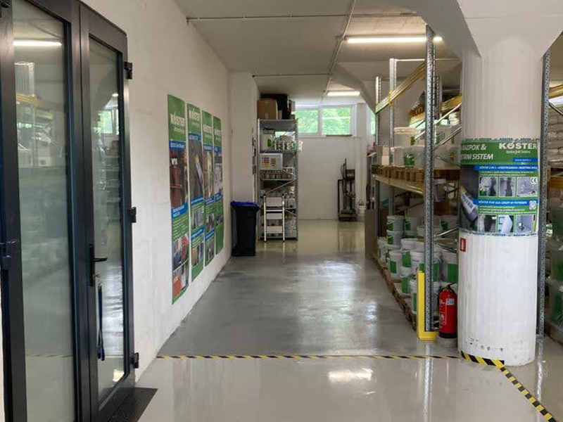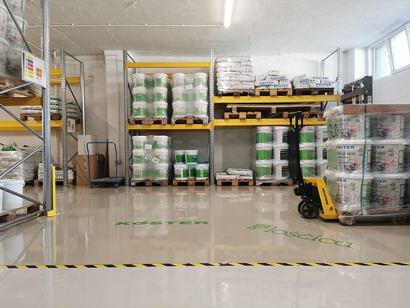 KÖSTER warehouse renovation in Kranj. The warehouse floor was quite worn out and needed renovation. We decided to use our own Köster epoxy coatings and made fields with different epoxy systems in the warehouse. Proper substrate preparation is particularly important when making epoxy floors. The contractor shotblasted the entire surface of the warehouse, followed by partial levelling of the floor surface. This was followed by the implementation of various epoxy systems.